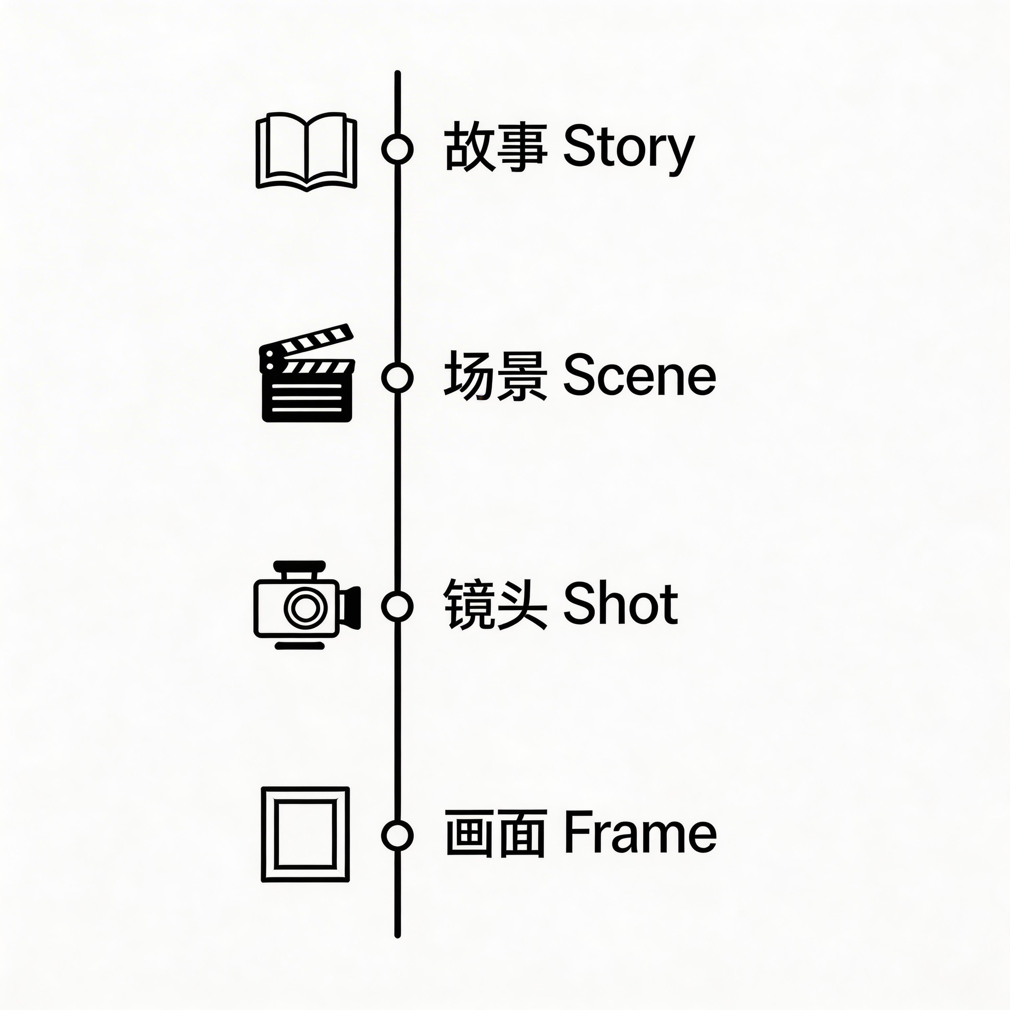 | 近景 | Close Up | CU | 头部或面部 | 强调情绪细节 | 紧张、震惊、思考 |